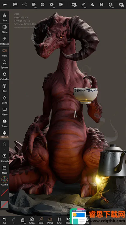 适用人群广泛,3D爱好者、手办原型师、学生教师、游戏动画从业者、3D打印玩家等都能借助它实现各自需求,比如通勤捏高模、课堂演示、快速出概念粗模、雕刻减面导出打印等。
