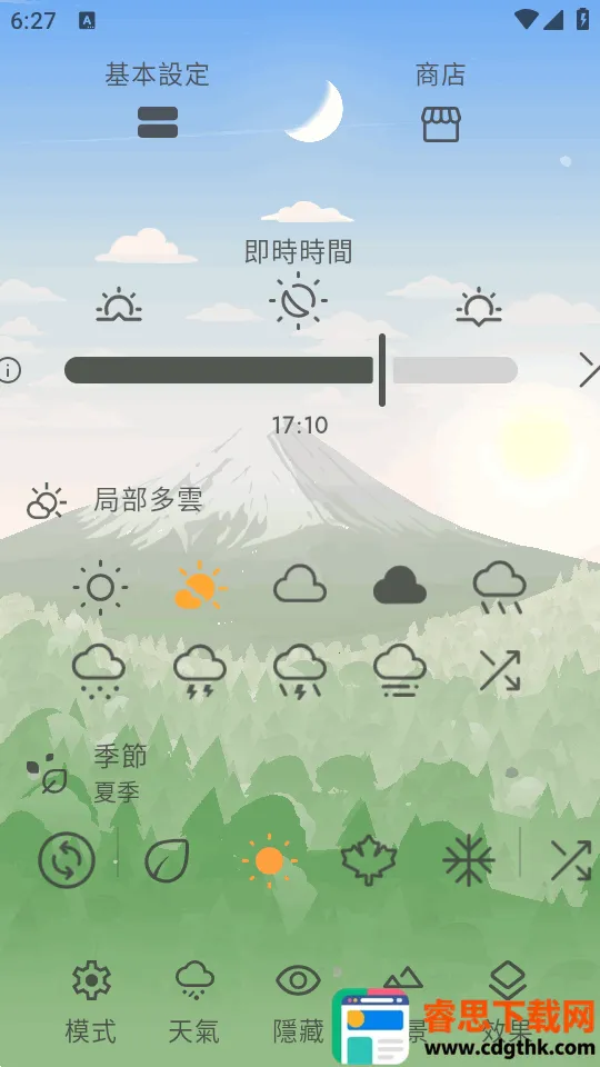 3. 天气展示方便实用:在基本设定里能设置天气,每天可及时查看当天天气预报情况。