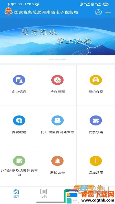 河南税务 2026 最新版本是全国统一的电子税务移动端,整合涉税业务,支持多类用户一站式办理高频事项,全流程线上办,还有多种认证与加密技术,定期更新,设反馈通道,功能涵盖申报、开票、信息报告等。
