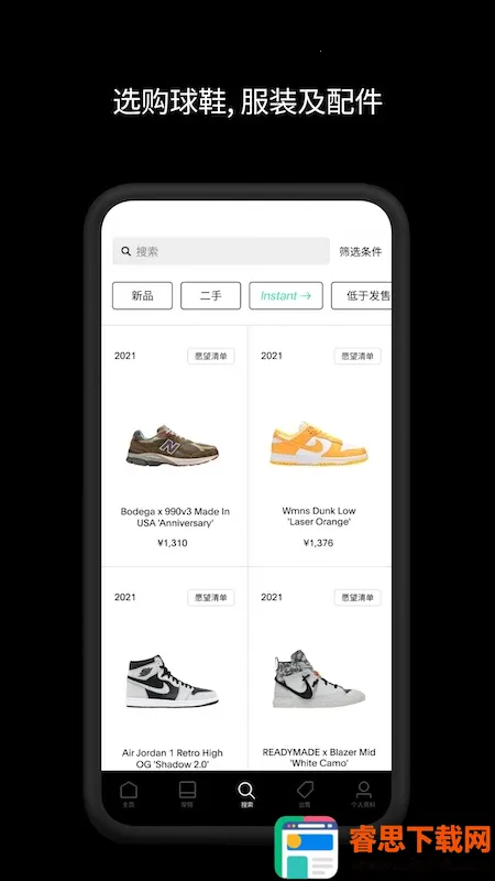 2. 丰富选择:平台汇聚超过100万款商品,涵盖Nike、Air Jordan、Adidas、Yeezy等众多品牌,包括服装配饰等潮流单品,满足多样需求。