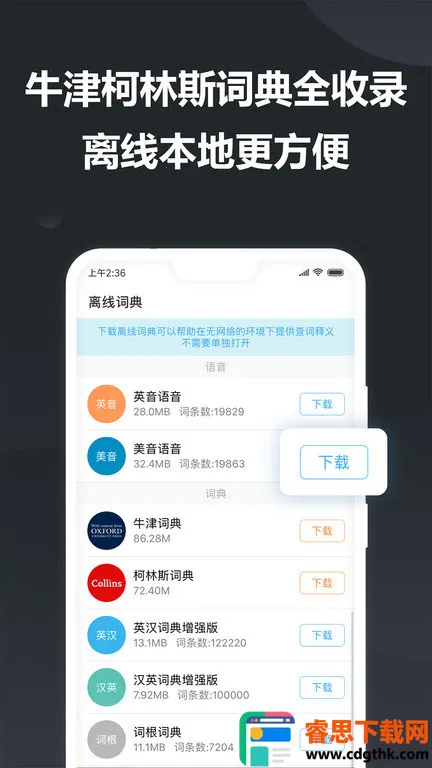 2. 支持离线模式:下载词库后,即便身处无网络环境,也可随时随地使用,不受网络限制。