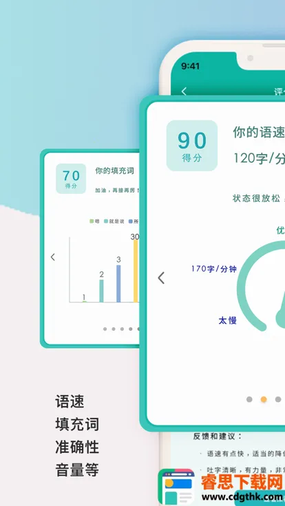 2. 陪练智能,自研模型为录制上传的演讲片段智能打分,即时反馈优劣,助于查缺补漏。