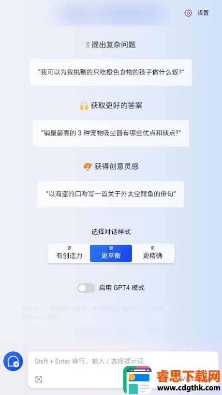 BingAI 给人带来了全新的体验。它宛如一位贴心的伙伴,能理解并学习人类语言,进行自然流畅的对话。无论是办公中的写代码、写小说、写文案还是翻译等工作,它都能出色胜任,助力用户获得舒适的 AI 体验。其优势显著,分享的文章可转发收藏且能同步找回,登录便捷还免费且有无限存储空间。亮点众多,垂直搜索优质,语音搜索和二维码识别实用,结果页赏心悦目,还有无痕搜索、强大图片搜索等。特色功能更是突出,像身边的研究助理、个人规划员和创意合作伙伴,能详细解答复杂问题,提供灵感,在聊天中还可追问获取更优答案,是一款值得尝试的软件。