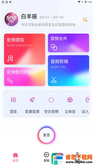 2. 功能丰富实用:提供音频提取、裁剪、混音、变速、变调、淡入淡出等功能,还能合并音频。