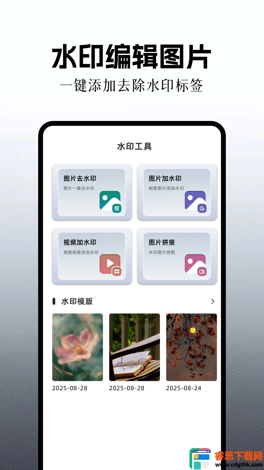 4. 功能全面:不仅能添加水印,还具备强大的图片编辑功能,可对照片细致调节以提高出片质量,拍摄完成的作品可直接导出保存到手机相册。