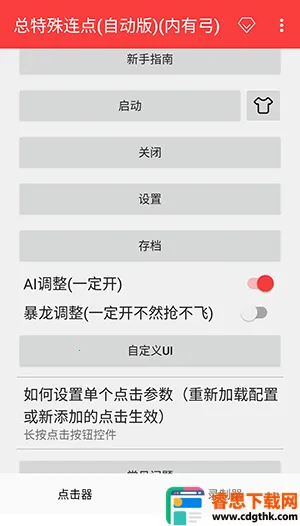 总特殊连点(自动版)是一款超棒的自动连点工具。它能让你在手机上轻松设置自动点击频率、点击位置和循环方式。不管是游戏挂机、抢购秒杀,还是其他重复性操作,都能自动完成,彻底解放双手,大大提升操作效率。使用起来也不复杂,开启所有软件需要的权限后,点击开启选项,再点击设置选项就能自定义点击设置。设置录制器也很简单,点击录制器界面右下角的加号即可开始录制,还能自定义相关设置。它的优点更是突出,支持自定义点击频率,能灵活设定点击位置,有悬浮控制与快速启停功能,还有定时与循环运行模式。在挂机抢红包等需要高强度重复操作的场景中,它真的非常好用,能轻松满足你的需求,赶紧试试吧!如果你想下载,一般在正规的应用市场搜索“总特殊连点(自动版)”就能找到并下载啦。