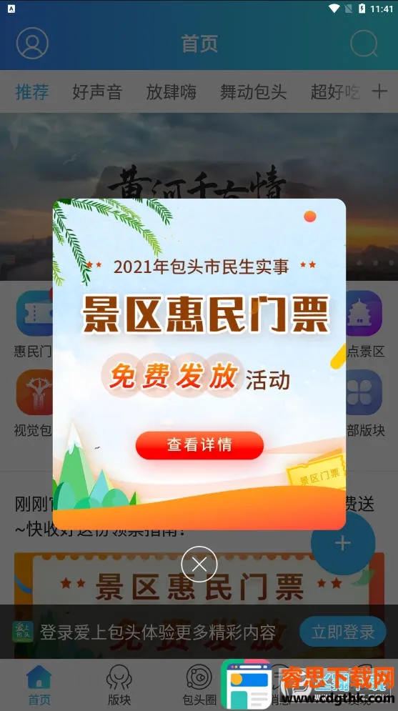 爱上包头app是专为包头本地用户打造的综合性生活服务平台。它能解决你诸多需求,比如想了解包头最新资讯,它能实时更新并为你推荐,让你一手掌握当地热点。在生活服务方面,支持电子健康卡管理、挂号预约、公交查询等。说到领票,爱上包头APP门票每天上午十点放票哦。活动时间是2021年5月17日至2021年10月7日,领取门票后有效期为10天,注册账号可领取每个景区门票2张。有了它,你可以随时了解包头的新闻时事,还能享受吃喝住行玩娱购等全方位服务,无论是查询各类信息,还是发布自己的生活动态与当地居民互动,都非常方便,能极大提升你的生活便利性,轻松满足你在包头生活的各种需求。
