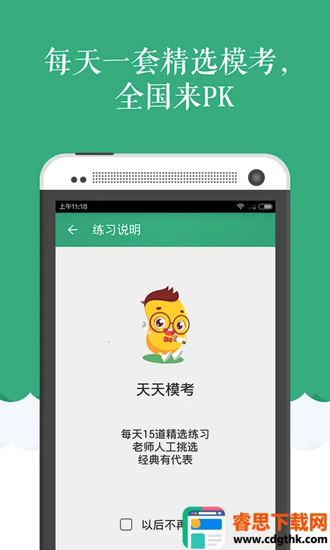 2. 专业老师人工介入:老师人工组卷,每天发布一套迷你模考,供全体用户自测,相比纯机器组卷更具针对性。