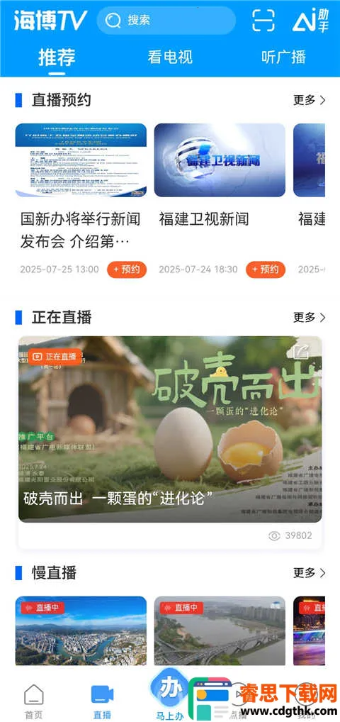4、多频道融合呈现,同步收看福建电视台多套节目,实时收听广播频率,随时回看头条资讯,视听选择更丰富。