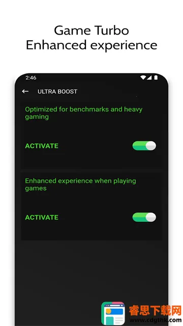 3. 发挥Android设备的真正性能,通过后台服务优化游戏设备,还能控制高级Linux CPU管理,一键提供最高性能。