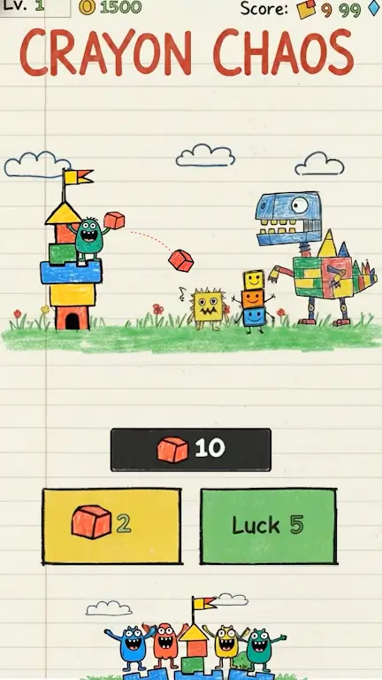 1. 蜡笔手绘风格,色彩斑斓,可爱画面与刺激战斗并存,带来独特视觉盛宴。