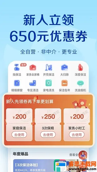 这软件用起来特方便。进入首页就能看到常用功能,切换分类页面能看到所有服务商品分类,福利页面还有各种福利活动。选购的商品在购物车一键结算,注册登录后就能正常使用全部功能啦。它坚持自营模式,服务人员四证齐全还公安联网认证,保障安全。有6稽查体系监管服务质量,全链路数字化,服务状态实时可查。还能提供定制化服务方案,会员有专属权益。不管是预约服务、查看服务人员信息,还是支付、评价反馈,都轻松搞定,真的能让咱的生活轻松又惬意。客服电话:95013355