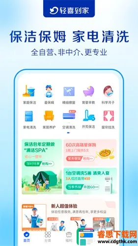轻喜到家2026最新版本是一款家政服务软件,坚持自营模式,严格筛选员工并联网认证。提供保洁、保姆、家电清洗等多元服务,智能化改造实现供需高效匹配,还有多样福利活动,操作便捷,售后完善,让生活更轻松。