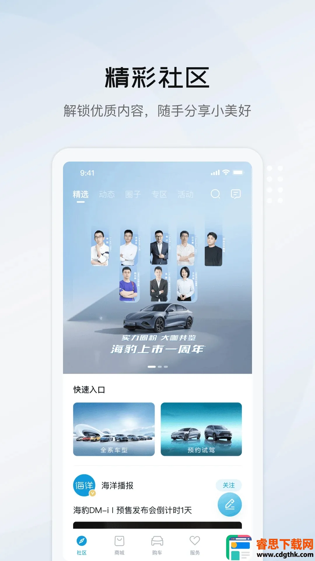 2. 精彩社区汇聚真实车主日常与用车灵感,可随手分享图文视频,共建有温度的海洋车友圈。