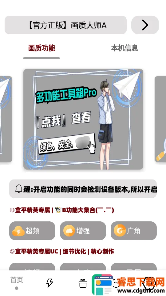 想破解画质解密 A 的密码来优化游戏画质吗?这款软件超棒!它针对和平精英等游戏,能一键解锁切换多种画质。比如标清、高清、超清,甚至还有超流畅加 120 帧率模式 ,让游戏画面超清晰,动作超流畅。开启 120 帧率模式后,感觉游戏里的动作都更带劲了,瞄准也更精准。它还支持阴影透明度和音质调节,能按自己需求调整。操作特简单,新手几步就能完成画质提升。有悬浮窗权限,游戏中能随时切换画质或暂停优化。自定义画质参数丰富,能根据设备性能选不同画质。无需 Root 权限就能调节游戏画质,轻松实现傻瓜式操作,适配各种手机机型,多阶画质改善方式让你有更多选择,助你在游戏里获得更舒适视觉体验和精准操控,赶紧试试吧!