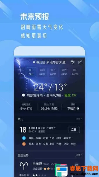 天气信息超丰富:提供综合天气雷达图,348小时动态未来降水预报精准到分钟,涵盖大风等多种场景;逐小时精细预报,可视化展示24 - 360小时级天气数据;超长多日预报,可查看40日天气日历及未来趋势曲线图。
