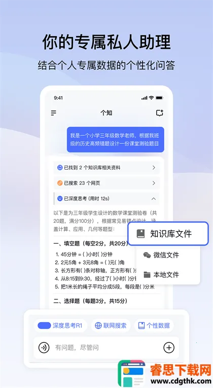 1. 个性化定制:支持生成个人知识库,上传文件搭建学习网络,还能根据使用习惯定制答案,打造专属智能模型。
