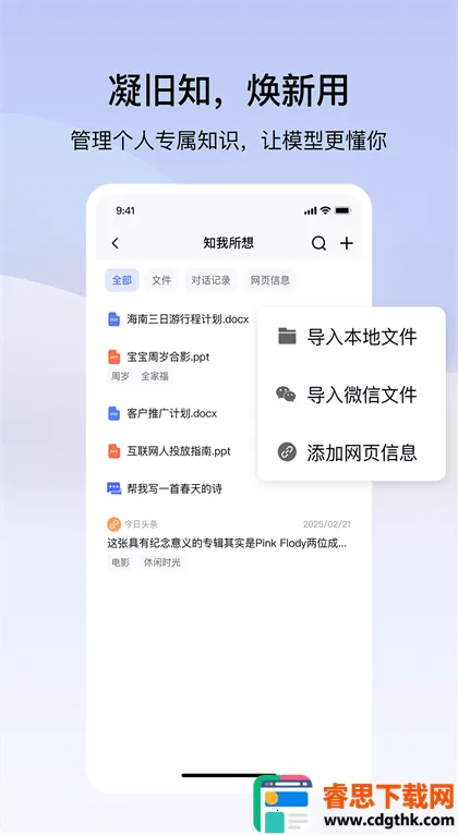2. 个性化定制:支持生成个人知识库,可上传文件搭建学习网络,基于导入文件生成所需内容,还能根据用户使用习惯定制答案,打造专属智能模型。