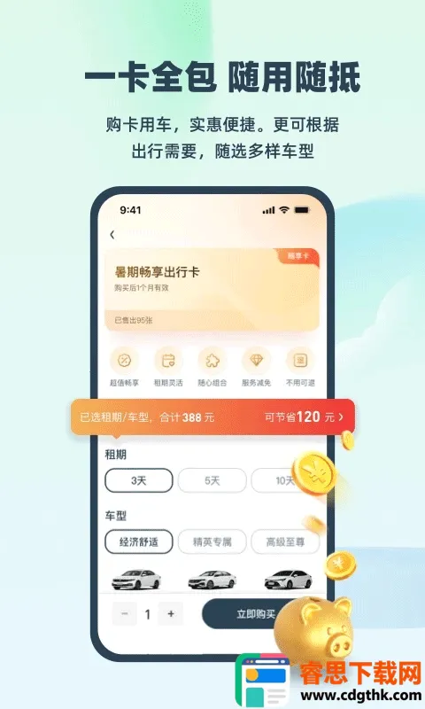 2. 信用免押超轻松:芝麻信用550分起即可申请租车押金免缴,还有新注册用户有机会得888元新人专属租车券包,出行更实惠轻松。
