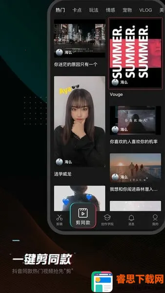 剪映是一款功能丰富的视频剪辑软件,有切割、变速、倒放等基础操作,还有多样滤镜、海量曲库、独家贴纸字体。操作简单易学,能帮用户轻松剪出美好生活,打造精彩视频内容 。