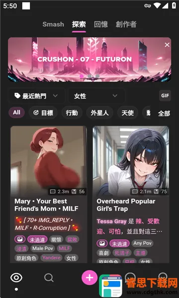 1. 精准标签探索:超细致标签系统,助用户快速找到契合偏好的AI角色与场景聊天室。