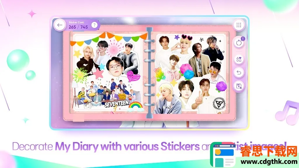 2. 可使用各种专辑封面贴纸,呈现喜欢的个人日志主题,增添游戏趣味性。