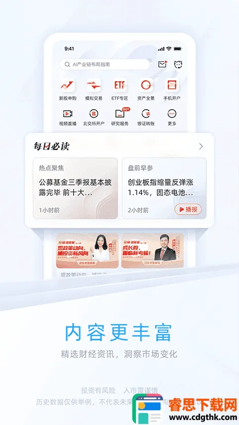 1、全市场覆盖:涵盖股票、基金、期货、债券、北交所及新三板等全市场业务场景,无论新手入门还是资深玩家,都能满足投资需求。