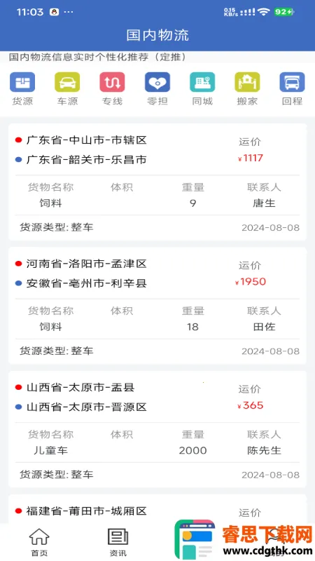 它能帮你轻松查询全国各地区物流信息,包括运输价格、货源、车辆等,让你全面了解物流运输详情。还能在线发布运输来源找车辆,跟踪实时运输动态,确保货物安全及时送达。