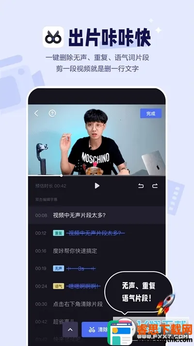 1. 智能识别功能强大,能精准识别视频中的无效片段、停顿、重复句及语气词等,一键删除,快速粗剪视频。