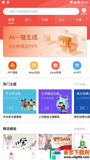 2. 借助 AI 技术,输入主题就能自动生成各类 PPT。