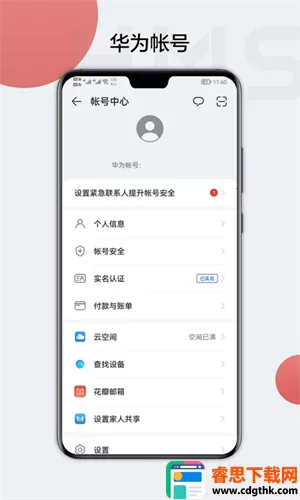 4. 可通过系统设置中的华为帐号模块,便捷管理个人资料、设备授权与隐私设置,让人安心。