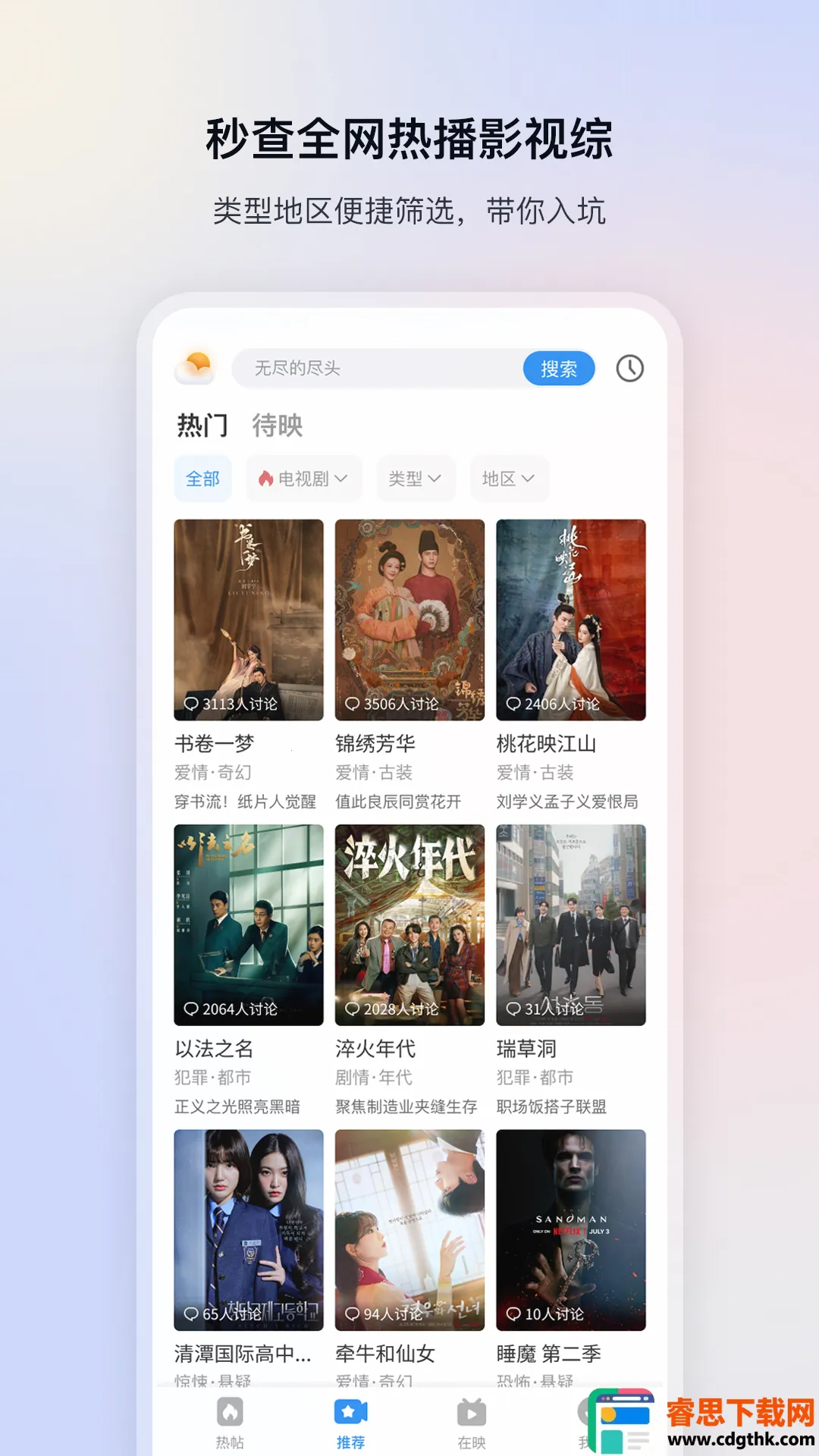 影视大全看看2026最新版本是一款免费播放工具,涵盖海量高清影视资源,包括剧、电影、综艺、动漫等。无需会员,一键点播,有爆款推荐、多榜单分类及自由收藏等功能,播放内核优化,资源持续扩充。