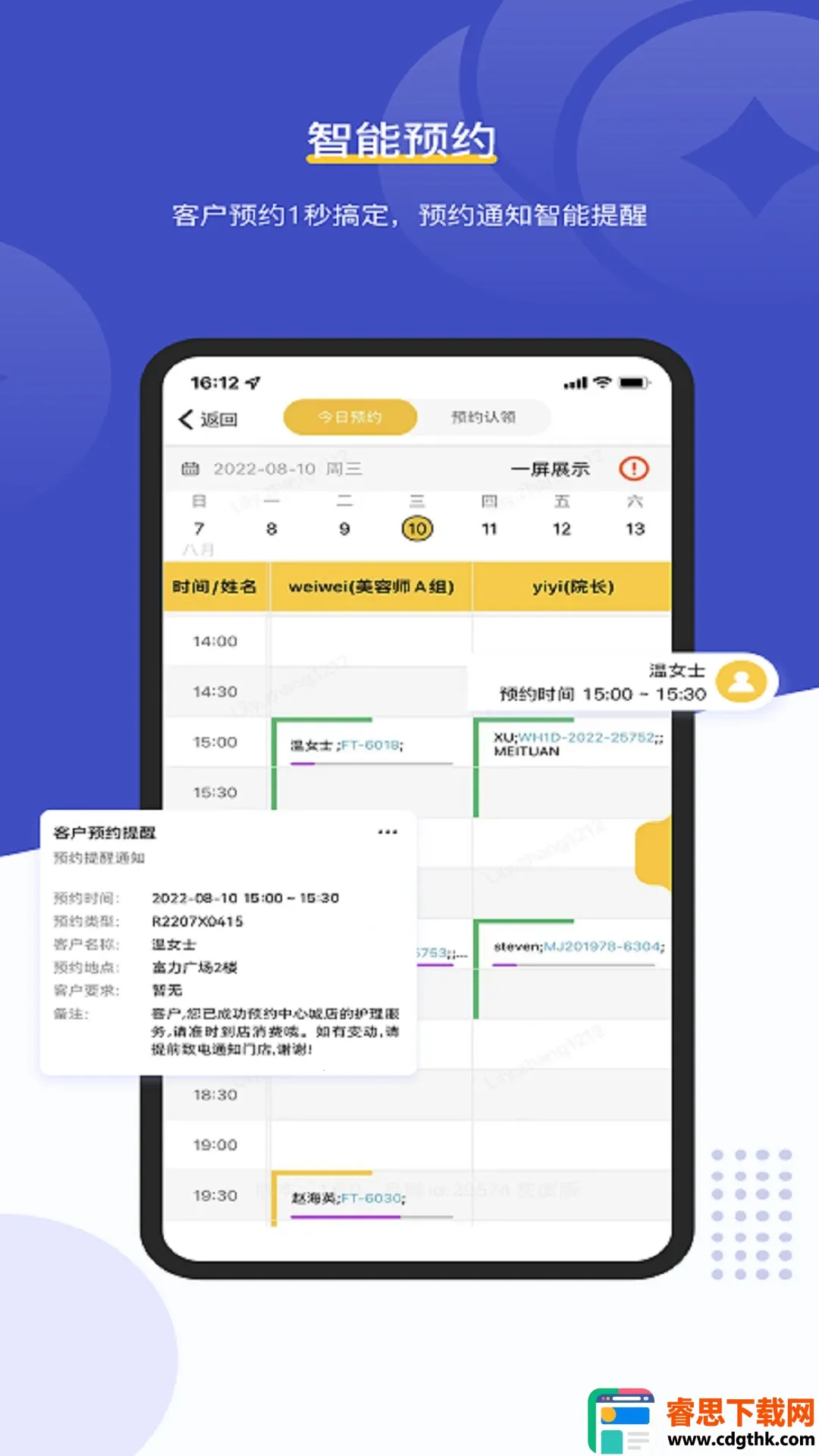 1. 功能全面:集个人排班、日常考勤、客户档案管理、工资统计、仓库盘点等功能于一体,为美业员工提供一站式工作管理解决方案。