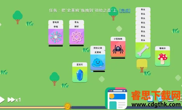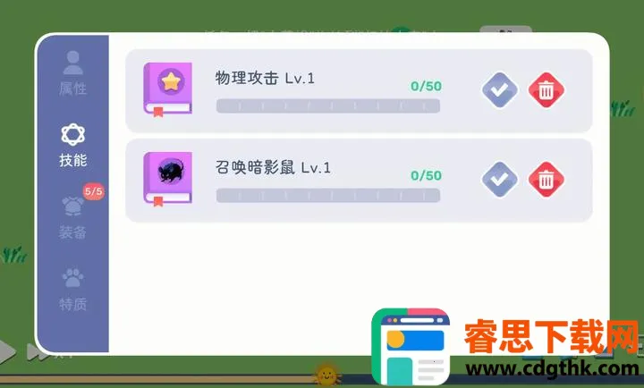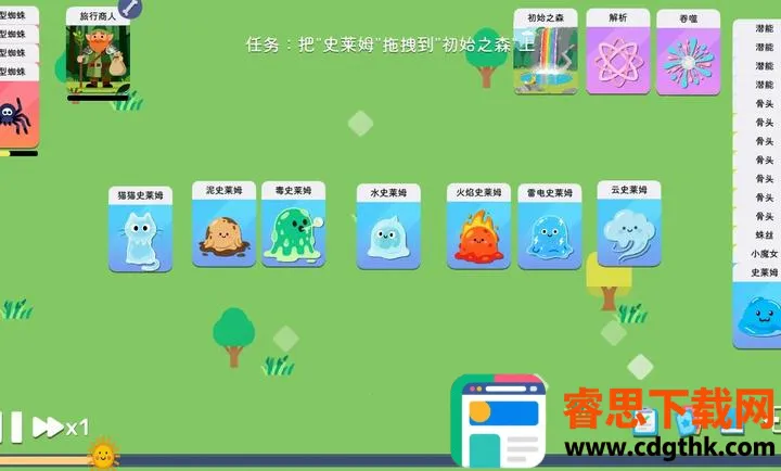 3. 深度角色成长:史莱姆能升级并在技能树提升属性、学习新技能,增强战斗能力。