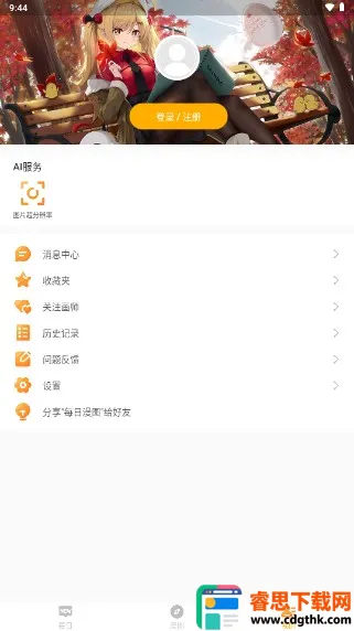 4. 贴心功能多样:有每日TOP9精选、收藏关注历史记录、AI功能、横竖图显示设置等,全方位提升体验。