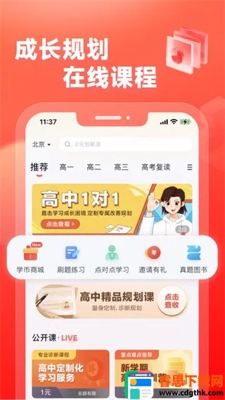 2. 能依据自身年级选择课程,依照复习计划练习各类题库,还可进行志愿规划,众多老师助力规划。