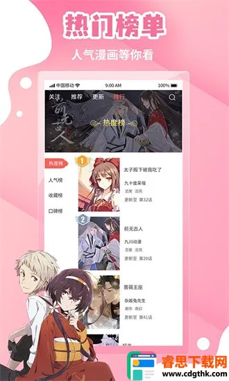 4. 热门排行:能了解当今动漫状况,最火爆的动漫排在前面,可自由选择观看。