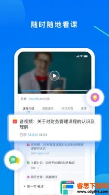 2. 具备移动看课功能,即便时间零散,也能下载课程到手机学习。