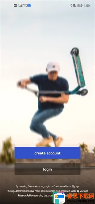 1、首先我们进入软件,有账号的朋友可以直接点击login进行登录,没有账号的朋友可以先进行注册,点击“create account”进行注册;