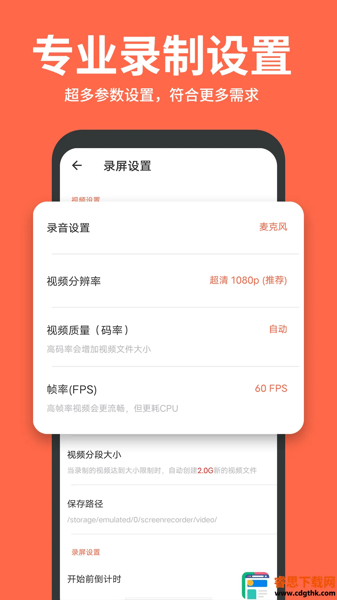 1. 超清画质:多种画质参数任你随意转换使用,完美支持不同清晰度不同码率的视频录制,轻松满足各种需求。