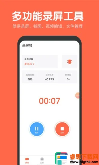 1. 支持悬浮窗模式录制,操作方便,轻松暂停与继续视频录制,录制文件清晰明了。