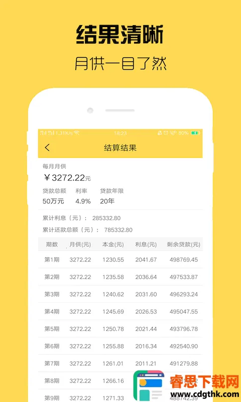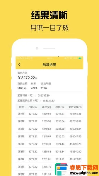 2. 能实时更新房贷利率,依据央行最新利率,快速算出每月还款明细,还可算出最优贷款方案。