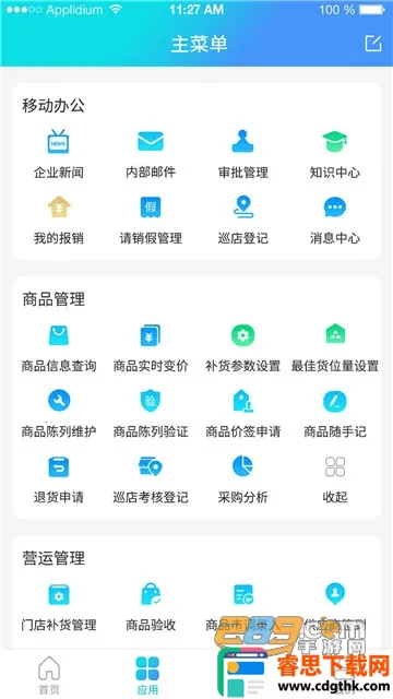 2. 支持考勤管理、审批管理、在线报销、产品管理、运营管理、门店检验登记等多项功能。