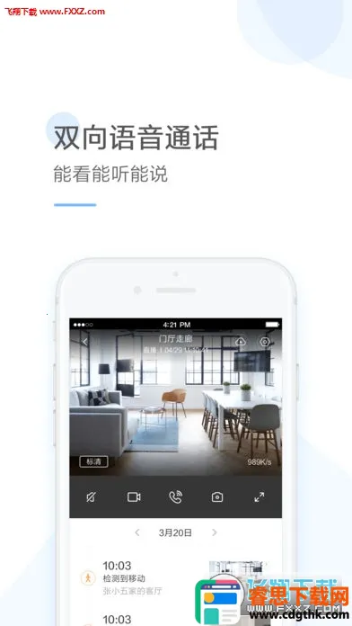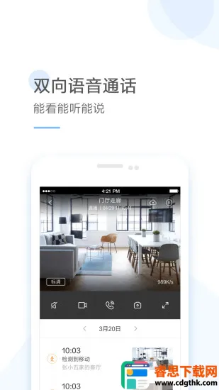 双向语音,沟通无阻:身处再远也能随时进行双向语音互动,与家人宠物仿佛就在身边,随时交流。