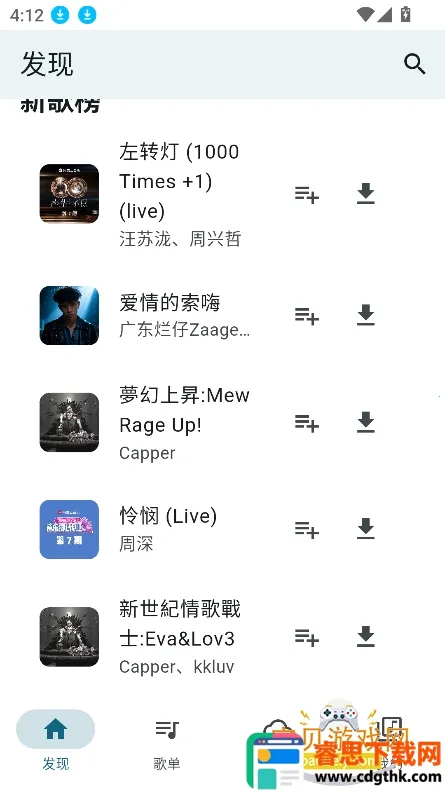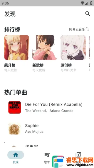 2. 支持个人歌单导入和歌曲下载,配备强大搜索功能,还能一键查看多个音乐榜单。