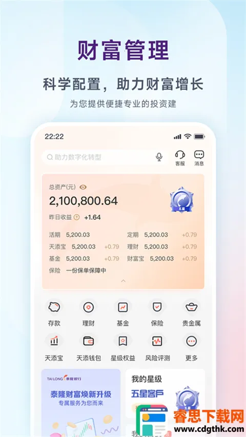 4. 财富管理便捷:理财服务随时相伴,提供多样投资选择,高效又便捷。