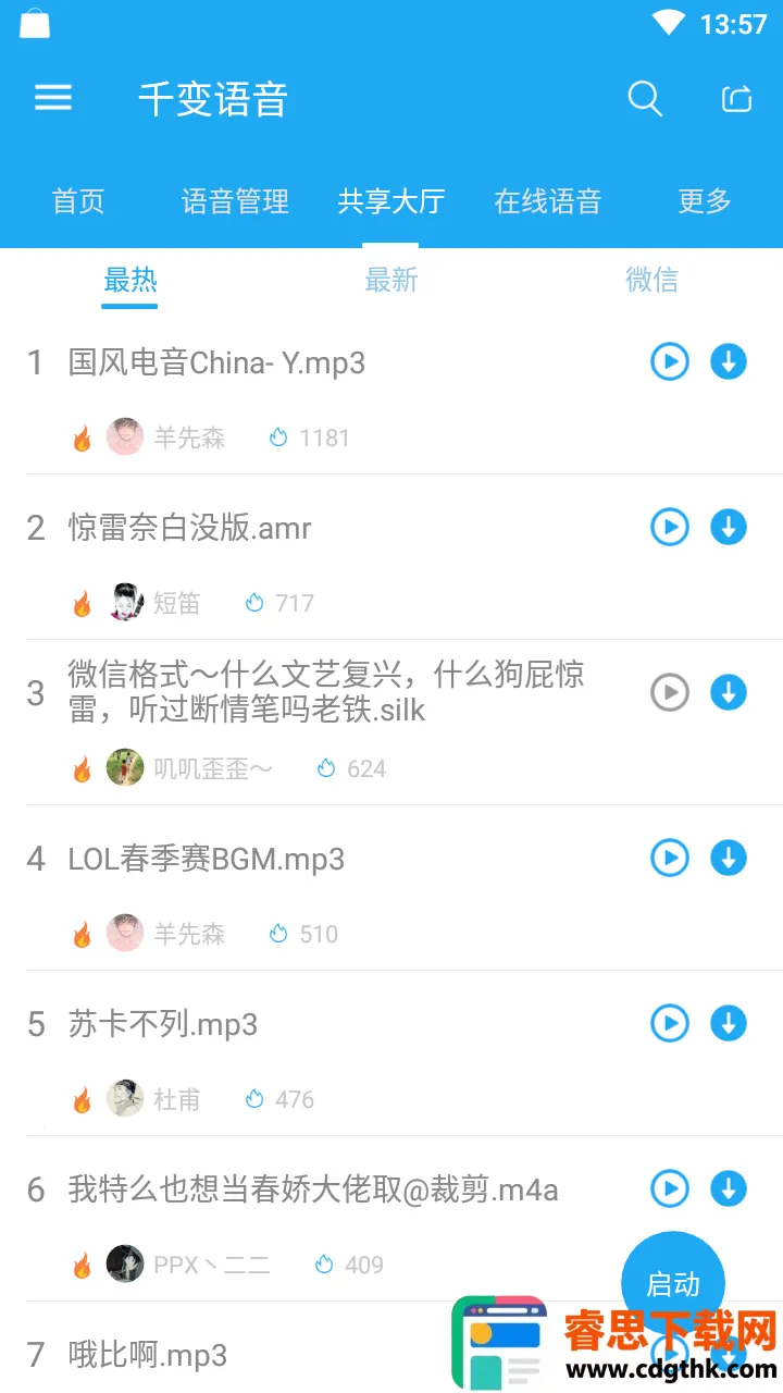 千变语音是成都景刘河网络科技有限公司研发的变声器软件,有海量语音包,支持 QQ 语音、微信等应用。能随意切换声音,有多种变声效果,操作简单,还可导入本地语音,让聊天、游戏更有趣 。