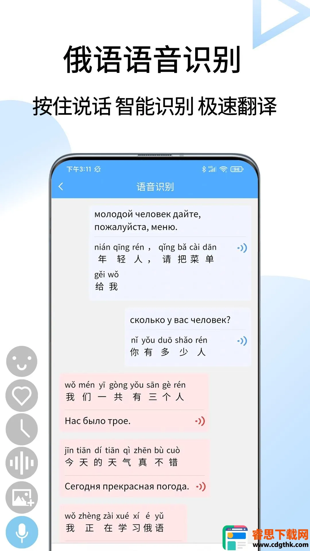 2. 便捷的翻译方式:具备文字翻译、语音翻译、拍照翻译等功能。长按语音翻译,拍照上传图片智能识别翻译,快速获取精准结果。