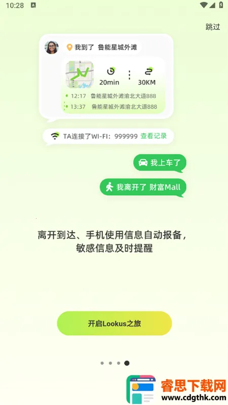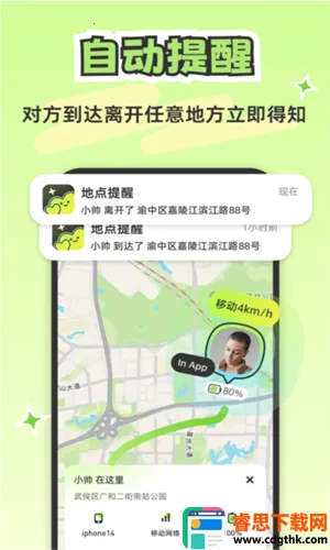 3. 自动报备贴心:上车下车、到达或离开特定地点都会自动发送消息,免去彼此担忧,给予对方安心的感觉。