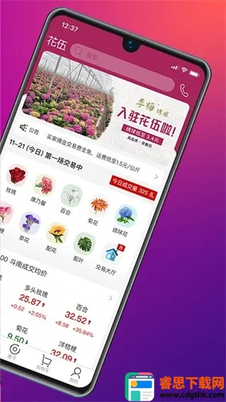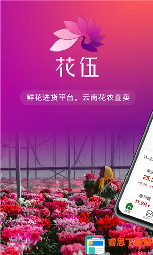 花伍最新手机版是云南花农直卖的鲜花批发平台,汇集玫瑰、康乃馨等多种鲜花。产地直销,价格实惠,9小时发货保证新鲜。提供花艺资讯,支持团购,还有物流查询、客服联系等功能,为花店及爱花人服务。